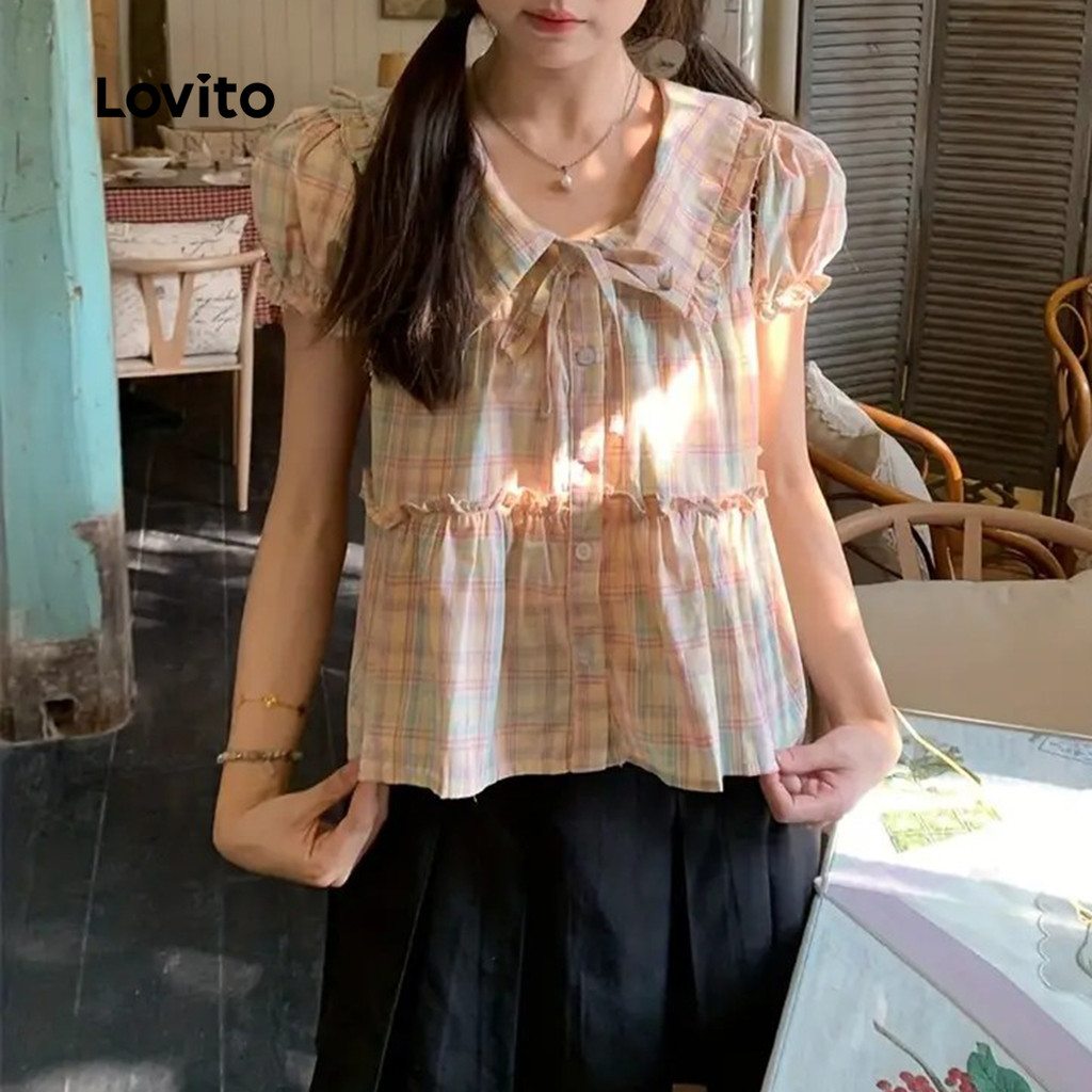 ✅DESTAQUES -❤️Botão -❤️TRIMENTO DE LETUCE -❤️Bainha inglesa -❤️Amarre -se Arco -❤️Tecido crocante -❤️Primavera e verão ✅DESCRIÇÕES Estampa / Padrão:xadrez Estilo:Casual Tamanho Plus:Não Material:Poliéster Composição:100% Poliéster Tipo de modelagem: Corte regular Transparência:Não Esticar:Não extensível Feito na China ✅O PACOTE INCLUI 1XBlusa ✅INTRODUÇÃO LOVITO A Lovito é uma marca em crescimento que acredita no poder das meninas. Estamos comprometidos em oferecer opções de roupas fashion e acessíveis, para todos os estilos, necessidades e identidades. Acreditamos que a moda deve ser divertida, liberadora e fazer você se sentir incrível. Afinal, o melhor acessório para qualquer look é a autoconfiança! ✅NOTAS DE COMPRA Antes de comprar, dê uma olhadinha na tabela de medidas disponível no site. Lembre-se de que, por serem feitas manualmente, as medidas podem variar de 1 a 2 cm. As cores dos produtos também podem ter pequenas diferenças em relação às fotos, dependendo da iluminação e das configurações do seu dispositivo. Siga nossa loja e conheça novos itens e as melhores ofertas para você!! Se você tiver alguma dúvida, converse conosco e responderemos o mais rápido possível.😊