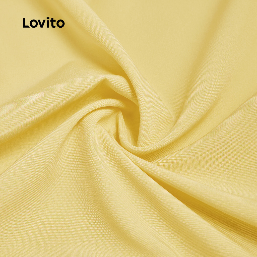 (New) Lovito Blusa Casual de Botão Frente Dividida Frente Primavera/verão Blusa Amarela para Mulheres L142ED617