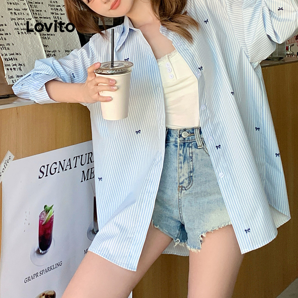 (NEW) Lovito Blusa Casual lazer simples outono/inverno blusa azul para mulheres LK3AD055