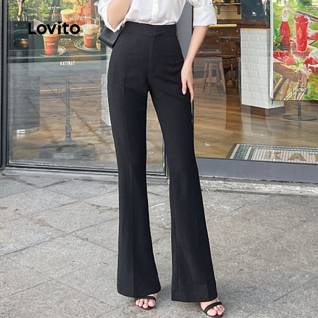 (New) Lovito Calças Elegantes com Zíper Linha Estrutural Todas As Estações Calças Pretas para mulheres L142ED811