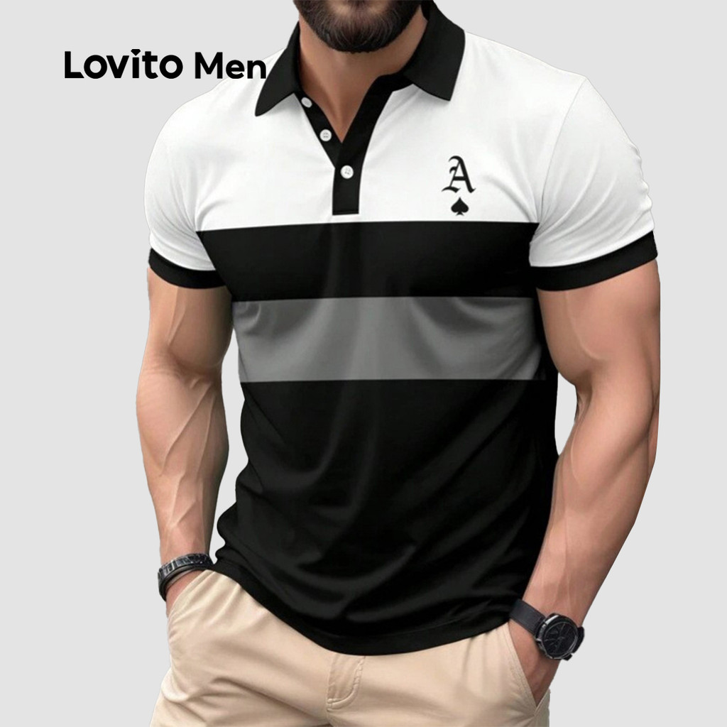 (NEW) Lovito Camisa Polo Casual com Bloco de Cores com Botões para a Primavera/verão para homens LNE118021