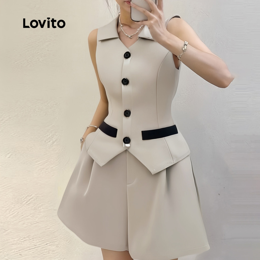✅DESTAQUES -❤️Ligação de contraste -❤️Botão frontal -❤️Boa textura -❤️Primavera e verão -❤️Zip frontal -❤️Button-Bellished ✅DESCRIÇÕES Estampa / Padrão:Plano Estilo:Elegante Tamanho Plus:Não Material:Poliéster Composição:100%Poliéster Tipo de modelagem: ajuste regular Transparência:Não Esticar:Não-estendido Feito na China ✅O PACOTE INCLUI 1XConjuntos de shorts ✅INTRODUÇÃO LOVITO A Lovito é uma marca em crescimento que acredita no poder das meninas. Estamos comprometidos em oferecer opções de roupas fashion e acessíveis, para todos os estilos, necessidades e identidades. Acreditamos que a moda deve ser divertida, liberadora e fazer você se sentir incrível. Afinal, o melhor acessório para qualquer look é a autoconfiança! ✅NOTAS DE COMPRA Antes de comprar, dê uma olhadinha na tabela de medidas disponível no site. Lembre-se de que, por serem feitas manualmente, as medidas podem variar de 1 a 2 cm. As cores dos produtos também podem ter pequenas diferenças em relação às fotos, dependendo da iluminação e das configurações do seu dispositivo. Siga nossa loja e conheça novos itens e as melhores ofertas para você!! Se você tiver alguma dúvida, converse conosco e responderemos o mais rápido possível.😊