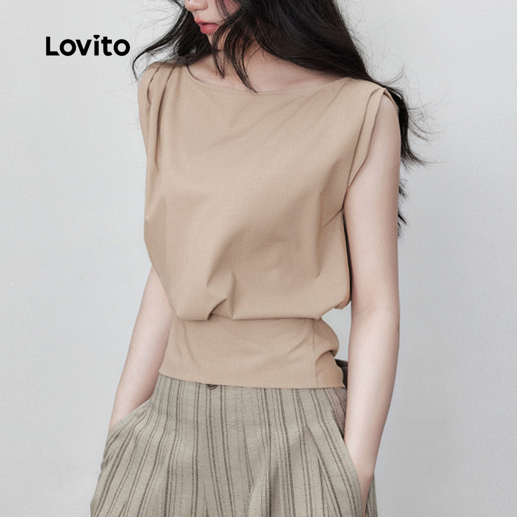 (New) Lovito Elegante Top com Laço Nas Costas para Primavera/verão em Caqui para Mulheres L142LD201
