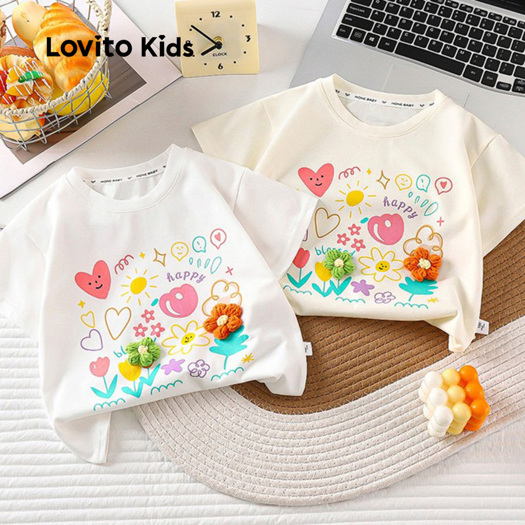 (New) Lovito Kids Camisa Casual Primavera/verão Camiseta Multicolorida para menina LNL115146
