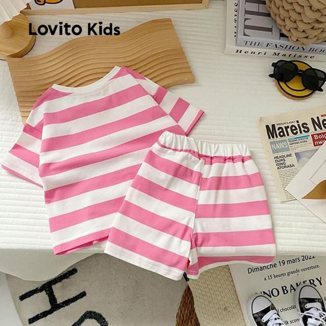 (NEW) Lovito Kids Conjunto de Shorts Fofos Bloqueado em Cores Simples Primavera/verão Rosa LNL119354