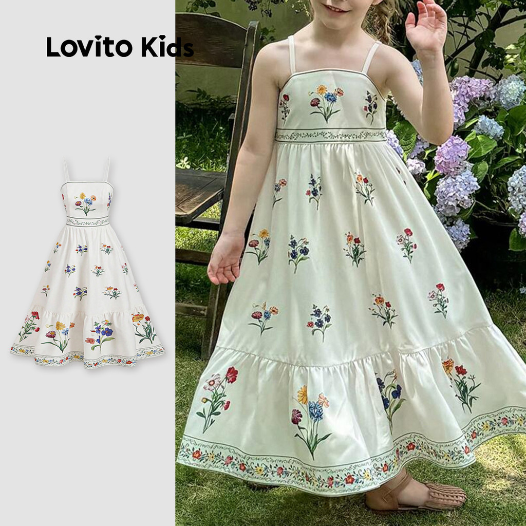 (NEW) Lovito Kids Vestido Fofo com Franzido para Menina Ideal para primavera/verão L153ED169