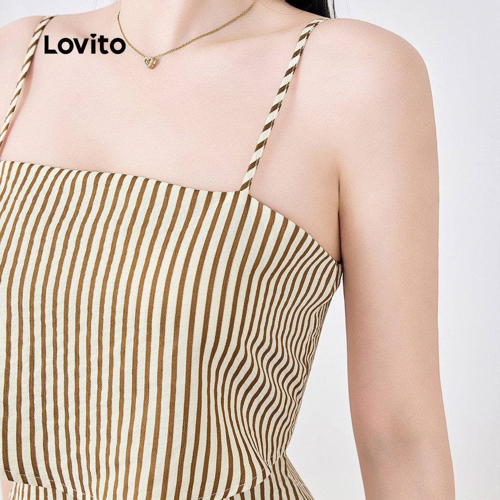 ✅DESTAQUES -❤️Zíper -❤️Fake 2-em-1 -❤️Macio e confortável -❤️Primavera e verão ✅DESCRIÇÕES Estampa / Padrão: listrado Estilo:Boho Tamanho Plus:Não Material:Poliéster Composição:35% Algodão + 65% Poliéster Tipo de modelagem: Ajuste regular Transparência:Não Esticar:não elástico Feito na China ✅O PACOTE INCLUI 1XMacacão ✅INTRODUÇÃO LOVITO A Lovito é uma marca em crescimento que acredita no poder das meninas. Estamos comprometidos em oferecer opções de roupas fashion e acessíveis, para todos os estilos, necessidades e identidades. Acreditamos que a moda deve ser divertida, liberadora e fazer você se sentir incrível. Afinal, o melhor acessório para qualquer look é a autoconfiança! ✅NOTAS DE COMPRA Antes de comprar, dê uma olhadinha na tabela de medidas disponível no site. Lembre-se de que, por serem feitas manualmente, as medidas podem variar de 1 a 2 cm. As cores dos produtos também podem ter pequenas diferenças em relação às fotos, dependendo da iluminação e das configurações do seu dispositivo. Siga nossa loja e conheça novos itens e as melhores ofertas para você!! Se você tiver alguma dúvida, converse conosco e responderemos o mais rápido possível.😊