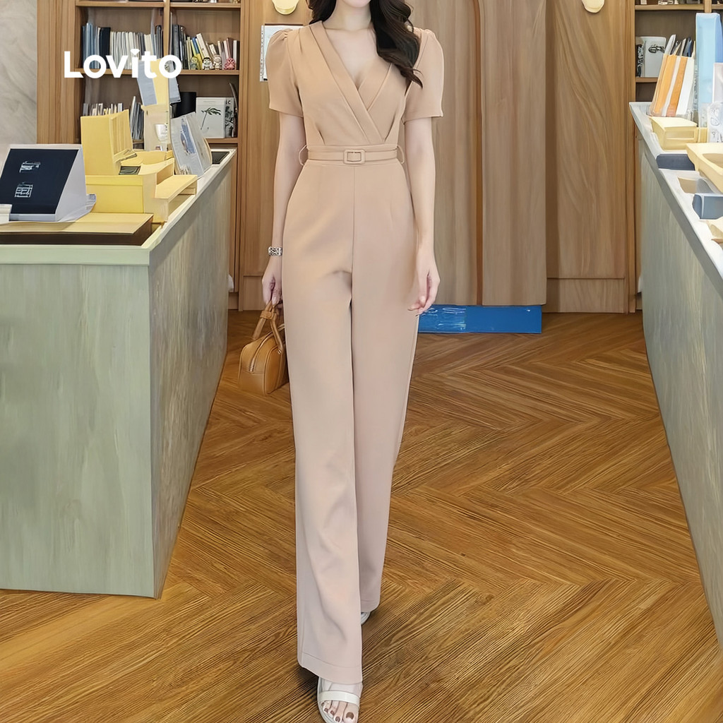 (New) Lovito Macacão Casual com Cinto para Primavera/verão em Caqui para Mulheres L149ED107