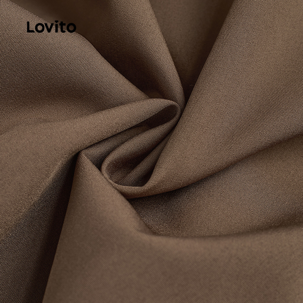 (New) Lovito Macacão Casual com Zíper e Botão Na Frente Primavera/verão Marrom para Mulheres L142ED149