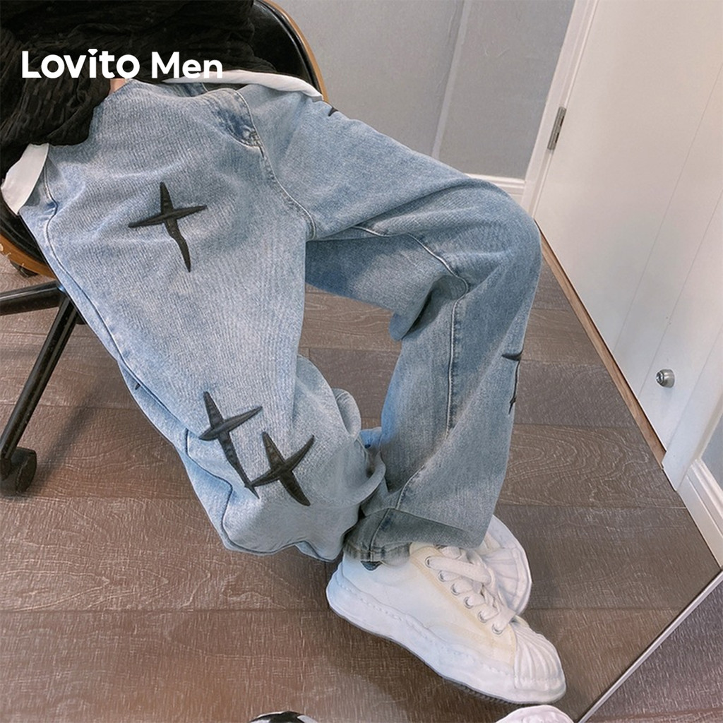 (NEW) Lovito Men Jeans Casuais de Bolso Primavera/verão Azul para Homens LNE131148