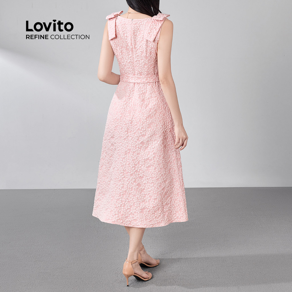 (New) (Lovito Refine) Vestido Elegante de Jacquard com Lacinho Na Frente para Primavera/verão Vestido Rosa LR18E178