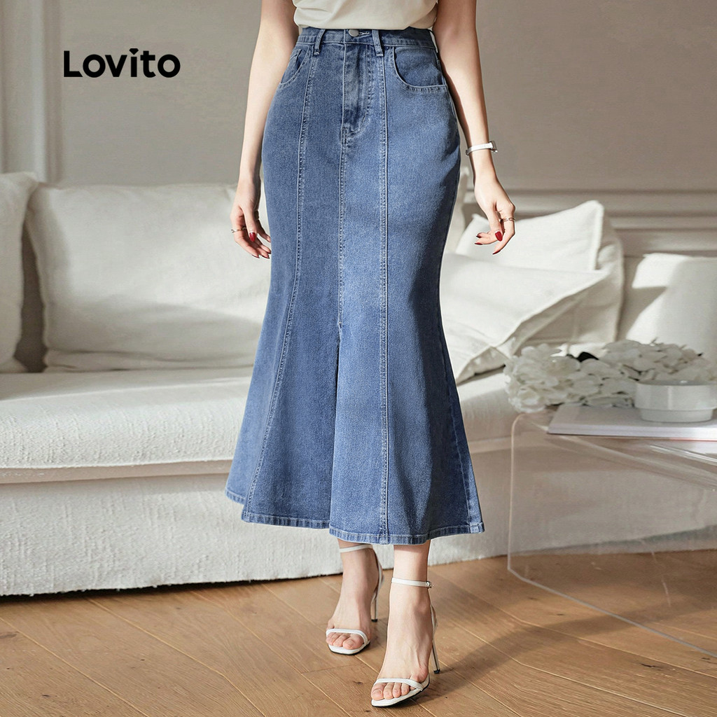(New) Lovito Saia Jeans Casual de Primavera/verão para Mulheres L143ED443