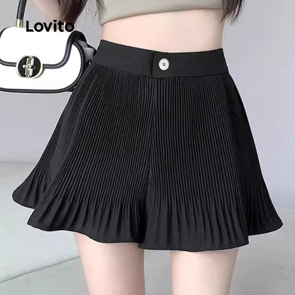 (New) Lovito Shorts Casuais com Botão para Primavera/verão Shorts Pretos para mulheres L144AD052