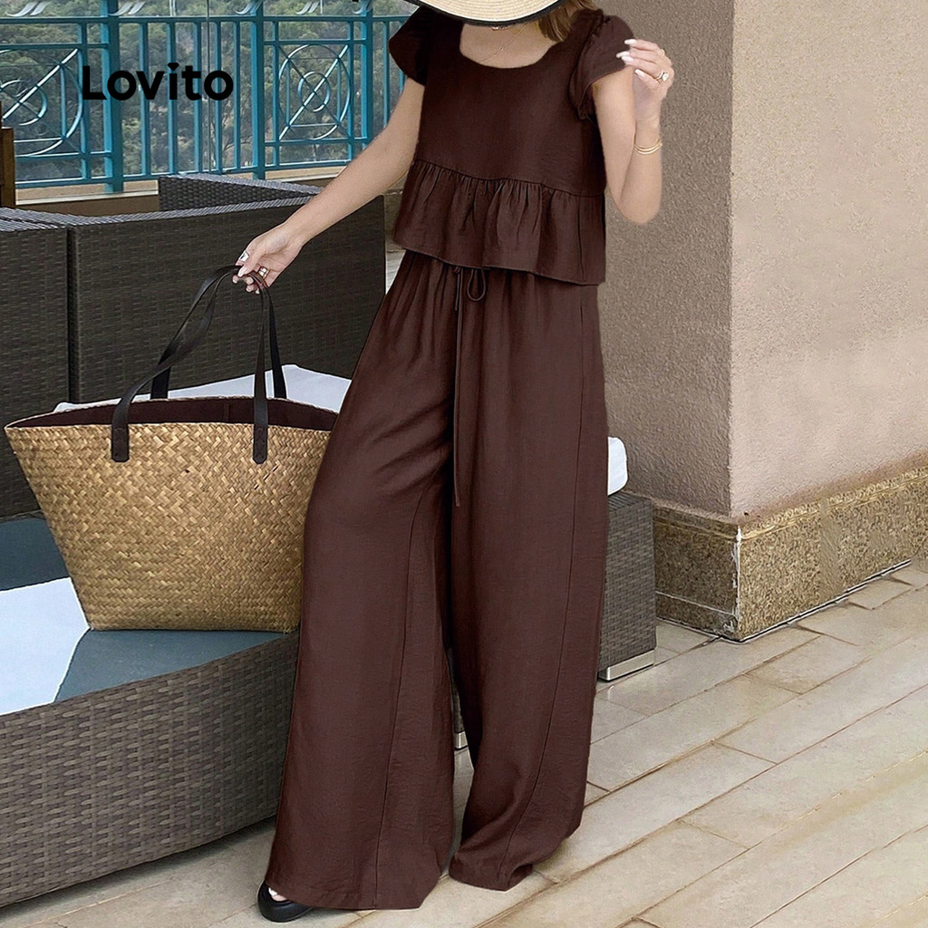 (New) Lovito Tops ou Shorts Casuais com Laço Nas Costas para Primavera/verão para Mulheres L143ED854