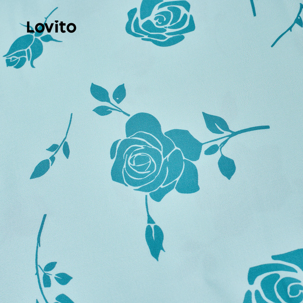 (New) Lovito Vestido Boho com Botões Na Frente Primavera/verão Vestido Azul para mulheres L149ED1056