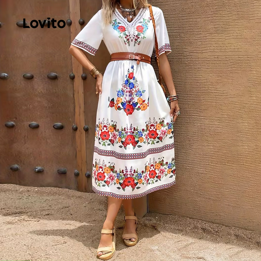 (NEW) Lovito Vestido Boho para Primavera/verão para Mulheres. LBL32448