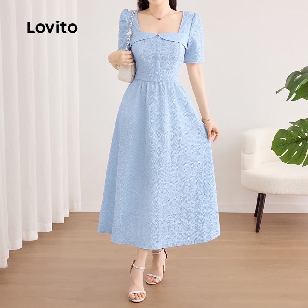 ✅DESTAQUES -❤️Bainha inglesa -❤️Botão -❤️Macio e confortável -❤️Primavera e verão -❤️Fixação de zip-back -❤️Button-Bellished ✅DESCRIÇÕES Estampa / Padrão: Plano Estilo:Casual Tipo de vestido:A Linha Tamanho Plus:Não Material:Poliéster Composição:100% Poliéster Tipo de modelagem: Ajuste Regular Transparência:Não Esticar:Não-elástico Feito na China ✅O PACOTE INCLUI 1XVestir ✅INTRODUÇÃO LOVITO A Lovito é uma marca em crescimento que acredita no poder das meninas. Estamos comprometidos em oferecer opções de roupas fashion e acessíveis, para todos os estilos, necessidades e identidades. Acreditamos que a moda deve ser divertida, liberadora e fazer você se sentir incrível. Afinal, o melhor acessório para qualquer look é a autoconfiança! ✅NOTAS DE COMPRA Antes de comprar, dê uma olhadinha na tabela de medidas disponível no site. Lembre-se de que, por serem feitas manualmente, as medidas podem variar de 1 a 2 cm. As cores dos produtos também podem ter pequenas diferenças em relação às fotos, dependendo da iluminação e das configurações do seu dispositivo. Siga nossa loja e conheça novos itens e as melhores ofertas para você!! Se você tiver alguma dúvida, converse conosco e responderemos o mais rápido possível.😊