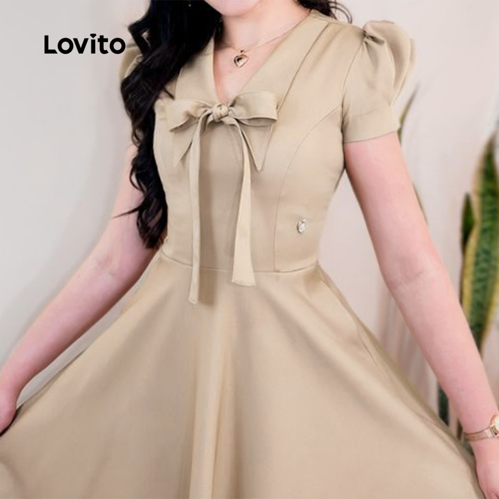 (NEW) Lovito Vestido Casual com Laço Primavera/verão Camurça para Mulheres L149ED1223