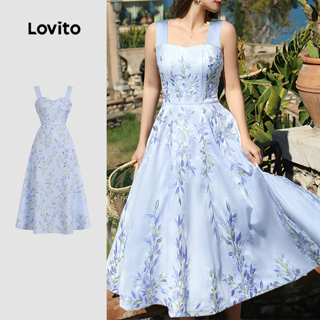 (New) Lovito Vestido Elegante com Estrutura de Linhas Flores Fecho de Zíper Primavera/verão para mulheres L143ED184
