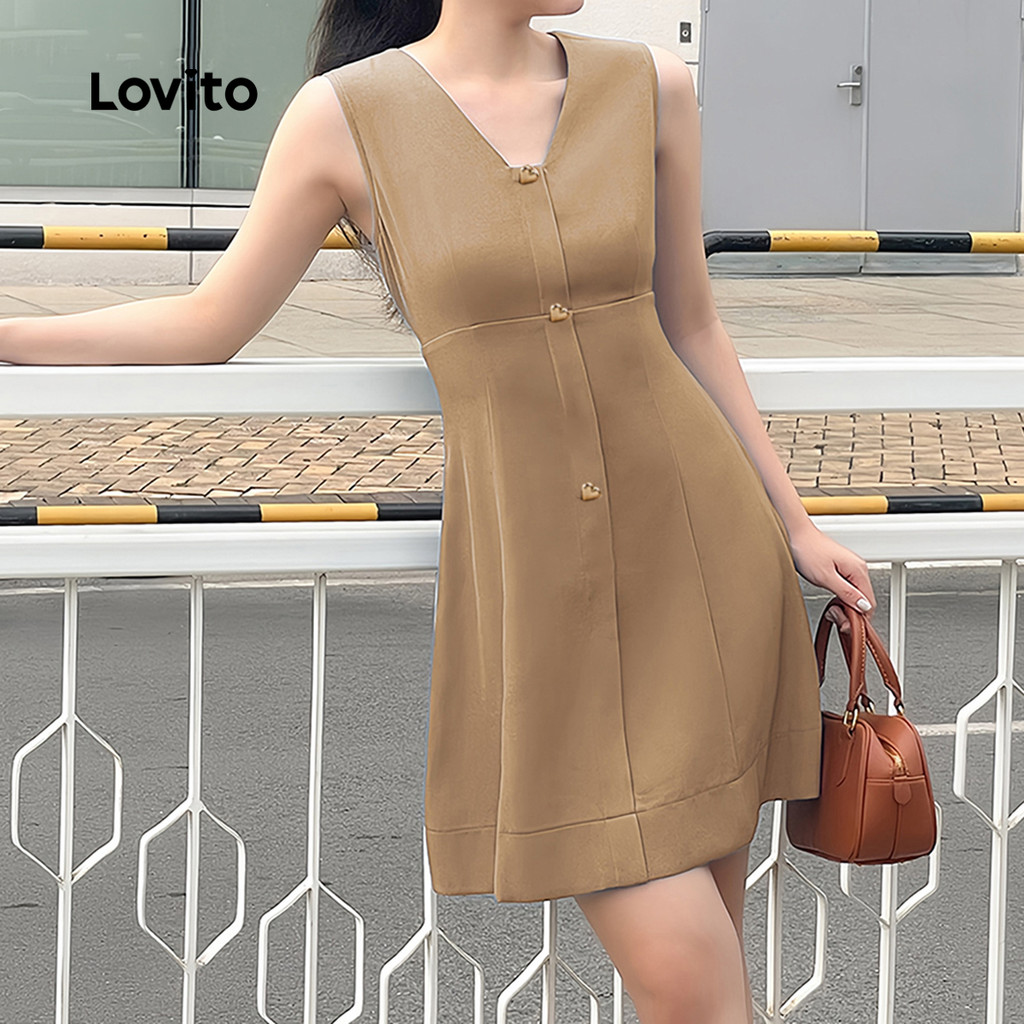 ✅DESTAQUES -❤️Botão -❤️Coração -❤️Botão frontal -❤️Macio e confortável -❤️Primavera e verão ✅DESCRIÇÕES Estampa / Padrão:Simples Estilo:Elegante Tipo de vestido:A linha Tamanho Plus:Não Material:Poliéster Composição:100% Poliéster Tipo de modelagem:Caimento regular Transparência:Não Esticar:Não esticável Feito na China ✅O PACOTE INCLUI 1XVestir ✅INTRODUÇÃO LOVITO A Lovito é uma marca em crescimento que acredita no poder das meninas. Estamos comprometidos em oferecer opções de roupas fashion e acessíveis, para todos os estilos, necessidades e identidades. Acreditamos que a moda deve ser divertida, liberadora e fazer você se sentir incrível. Afinal, o melhor acessório para qualquer look é a autoconfiança! ✅NOTAS DE COMPRA Antes de comprar, dê uma olhadinha na tabela de medidas disponível no site. Lembre-se de que, por serem feitas manualmente, as medidas podem variar de 1 a 2 cm. As cores dos produtos também podem ter pequenas diferenças em relação às fotos, dependendo da iluminação e das configurações do seu dispositivo. Siga nossa loja e conheça novos itens e as melhores ofertas para você!! Se você tiver alguma dúvida, converse conosco e responderemos o mais rápido possível.😊