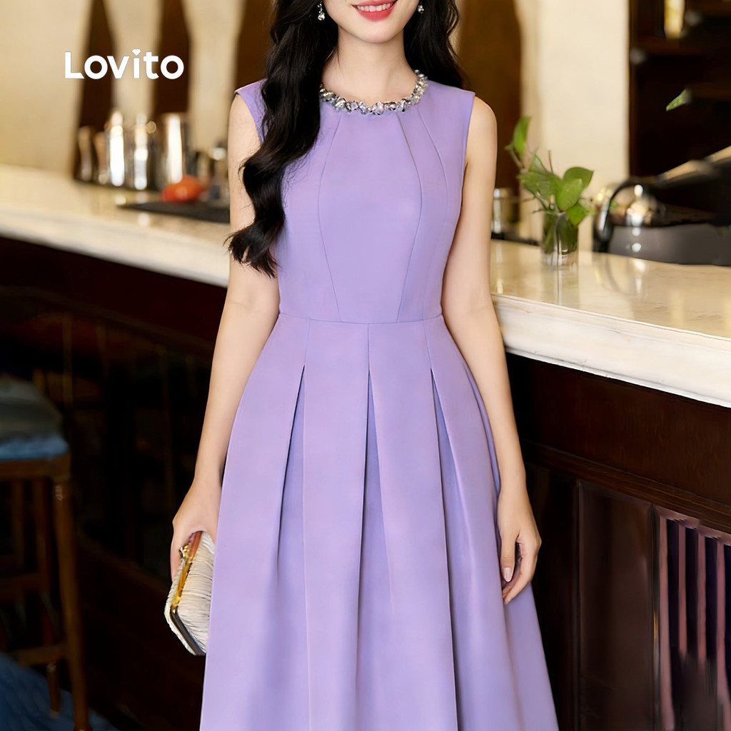 (NEW) Lovito Vestido Elegante Linha Estrutural Primavera/verão Roxo para Mulheres L178ED194