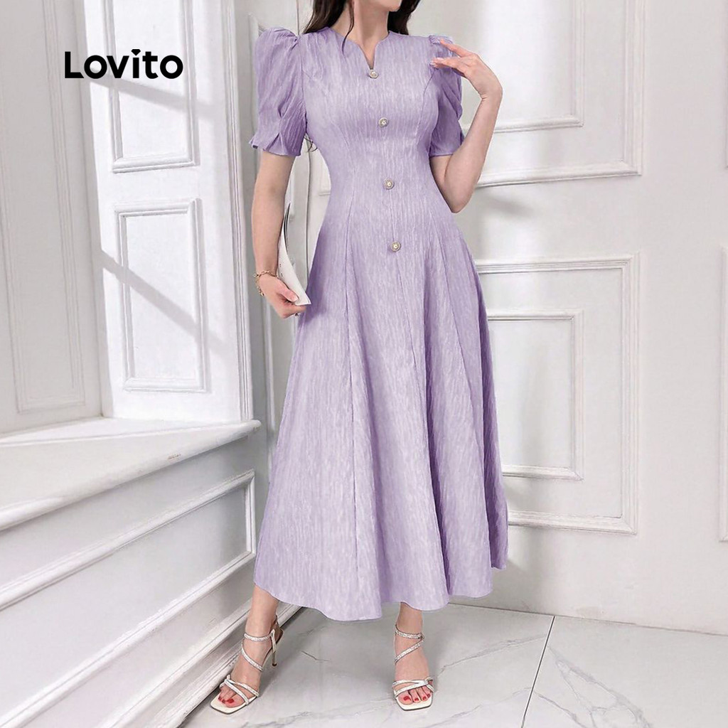 (New) Lovito Vestido Elegante Primavera/verão Vestido de Cor Roxa Clarinha para Mulher L149LD051