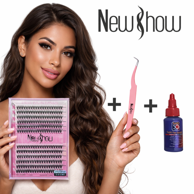 New Show 1 Cartela De AD4098-20P-0.1+30P-0.07 D 9-14MIX Cilios Tufos+1 Pinça+1 Super Cola 30ml Salon Pro Rich