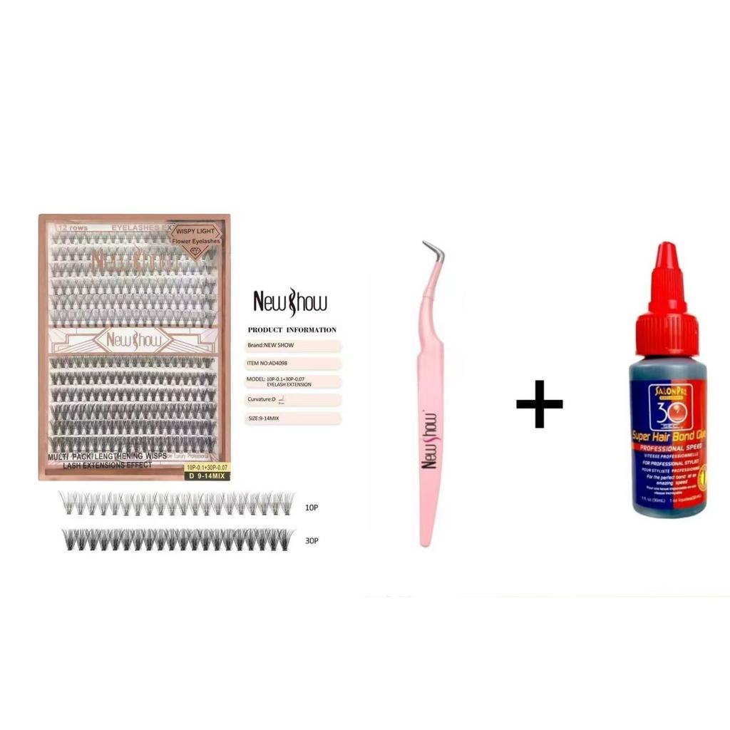 New Show 1 Super Cola 30ml Salon Pro +1 Pinça+1 Cartela De Cilios Tufos-12P/20P/30P/40P-0.10-9-14MIX