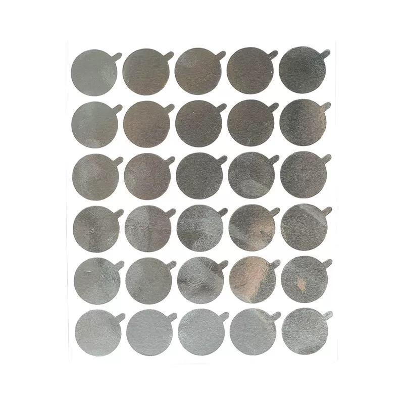 Descrição do produto Adesivo Formato Bolinha Redondo c/ efeito Prata /metalizado - Produzido em papel (Não pode molhar) - Ideal para utilizar em fechamentos de envelopes ou saquinhos de presente - Contém 300 unidades - Tamanho de cada Bolinha: 1,7x1,7 cm