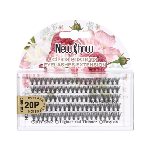 New Show Cílios Tufos Sem Nó DIY 12P/20P/30P/40P/SH076/SR116 EYELASH Extensão de Cilios Alongamento