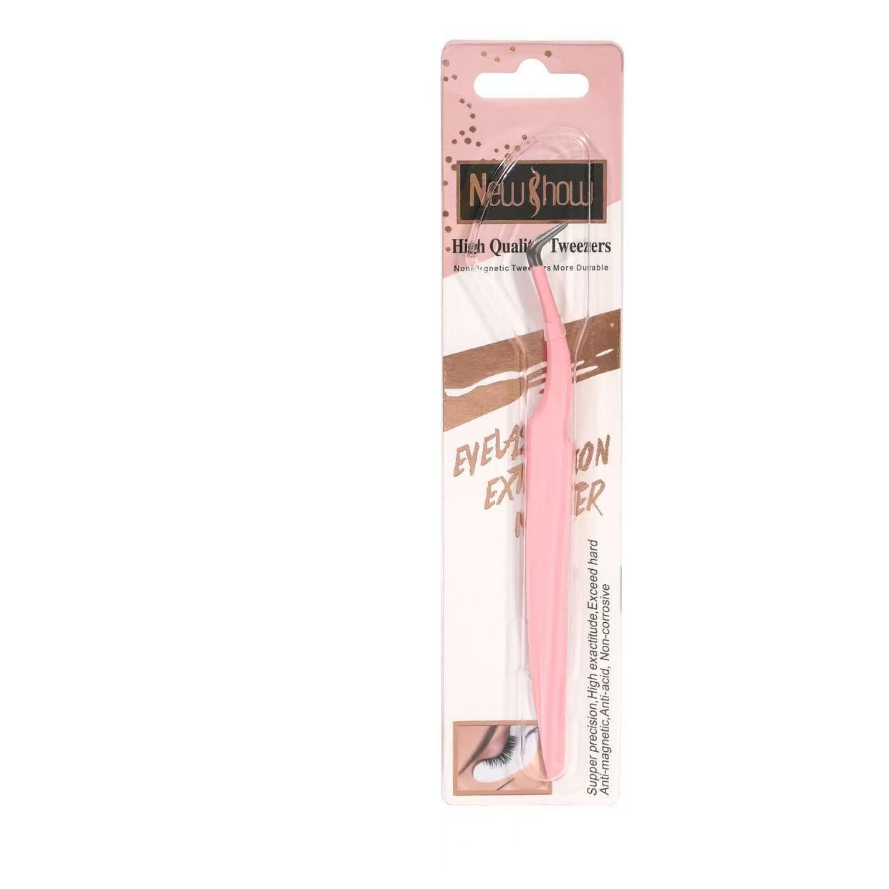 New Show Pinça Aço Reta De Alta Precisão Para Cílios De Inoxidável Ponta Curva/ROSA/Profissionalismo