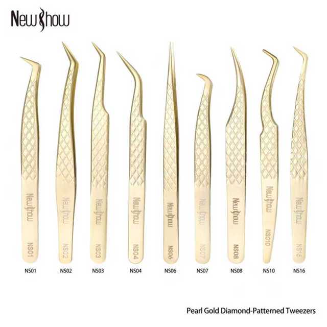 New Show Pinça Curva Curvada Reta Extensao De Cilios/Padrão Diamante Dourado-Alta Precisão