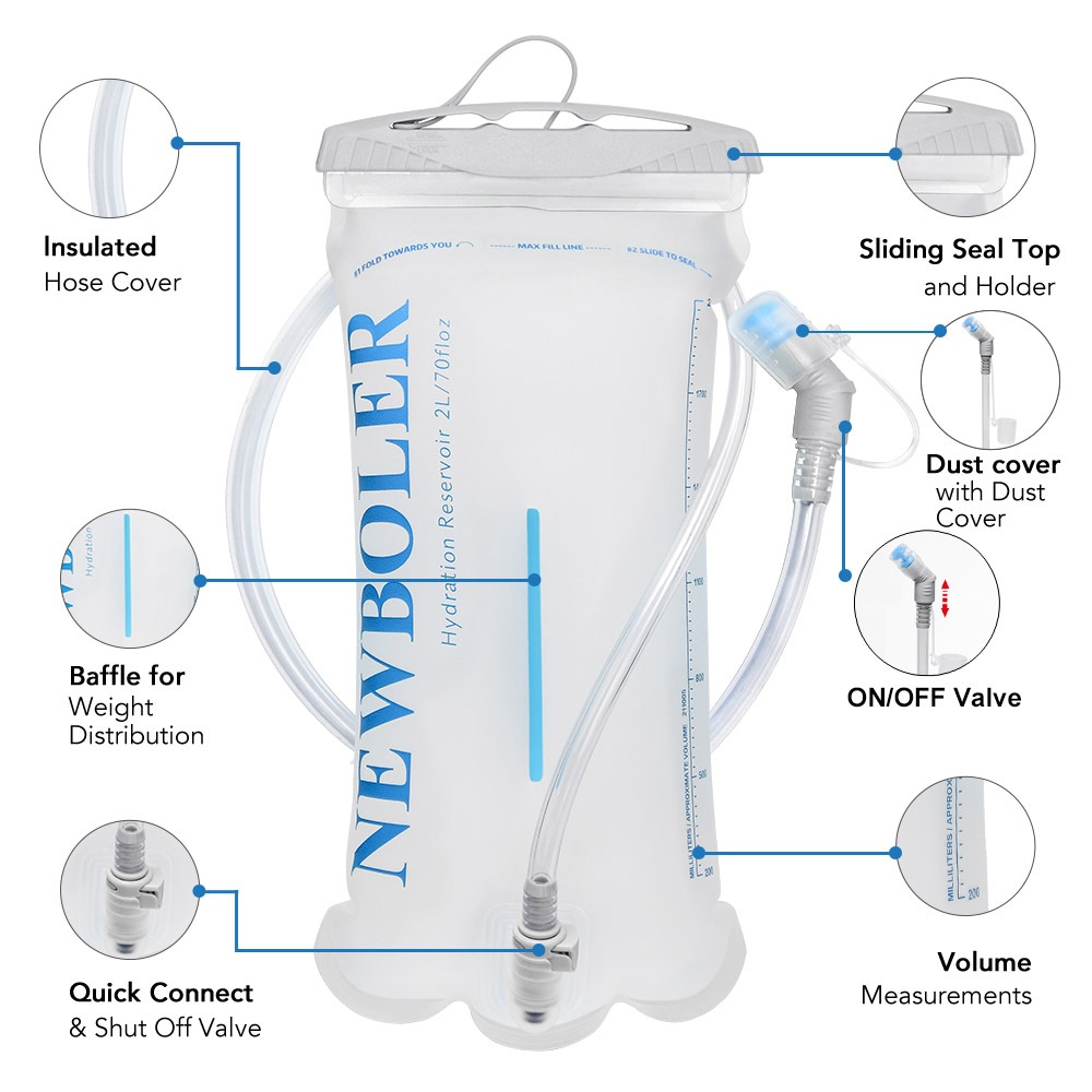 Newboler 2L 3L Bexiga De Água TPU BPA-Free Running Hydration Bladder Saco Portátil Para Caminhadas Com Colete De Hidratação Ciclismo Mochila