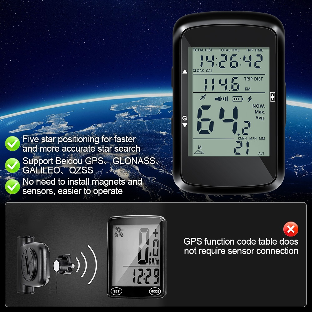 Nota: 1. Você deve esperar que o sinal GPS seja procurado antes de começar a ciclismo. 2. Só precisa definir a zona de tempo ao iniciar, após a postagem do GPS, ele ajustará automaticamente o tempo. O padrão de fábrica é a zona horária da China. Informações do Produto: Tipo: Tipo: GPS Tamanho da tela: 2.4 polegadas Bateria: bateria de lítio À prova d'água: Sim Vida útil da bateria da bateria: 30 horas Satélites suportados por satélites: Suporte BeiDou, GPS, GLONASS, Galileo, QZSS Detalhes do produto: 1. Calibração automática de tempo de satélite, luz de fundo constante manual em 2. Fácil de instalar, à prova de clima, leve, sem fio e sem ímã 3. Sensor Speed & Cadence 2 em 1 (Se precisar de velocidade e cadência no mesmo tempo, você precisa comprar 2 unidades) 4.Compatível com guidão circular e plano, adequado para a maioria das bicicletas de montanha e estrada