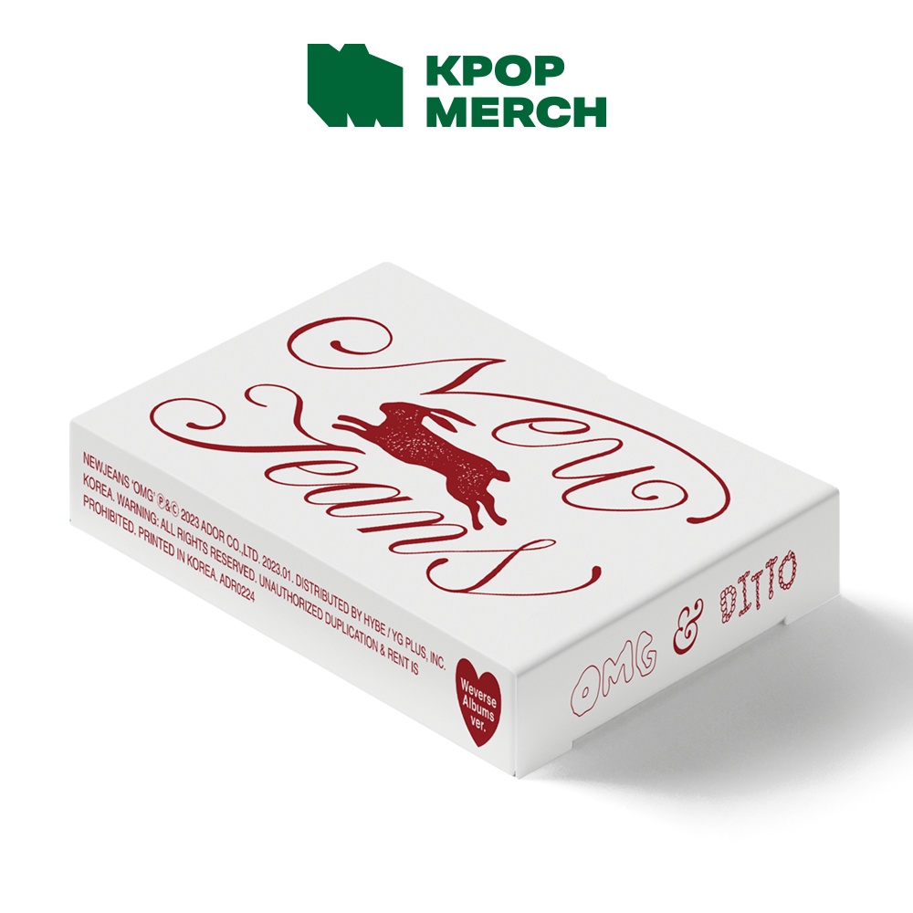 ◈(Only Album) NewJeans - OMG_Weverse Album version◈ 💿 (Only Album) NewJeans - OMG_Weverse Album version 🎵 Contents - Out Box - Lyric Card 28p - Photo card 10ea 1set (1set out of 3set) - QR Card 1ea (1 out of 3) 📅 Released on January 2, 2023 ※ Very fine scratches or imprints are not a reason for refund or return. ✔Outbox is a protective agent to protect this product, and there is no exchange or refund because of contamination or damage that may occur during the distribution process. ✔There may be some scratches on the product due to the manufacturing process. This is a natural phenomenon that occurs during production and is not a defective product, so exchanges/returns are not possible. ✔In the case of prints and printed matter (photocard), imprints, scratches, press marks, etc. of less are not subject to exchange or return, except for portraits. Also, You cannot exchange or refund the bent photo card that can be unfolded normally again. ✔Products that have been delivered for more than a week cannot be exchanged or refunded and returned. --- 😊Welcome to Our Store, Kpop merch ! ⭐KPOP_merch is Korea based Global Sales Company. ⭐Officially distributed Brand New & Factory Sealed product. ⭐Minor scratches and discoloration of the case can not be exchanged or returned ⭐No Charge for safe packing ⭐No Down payment
