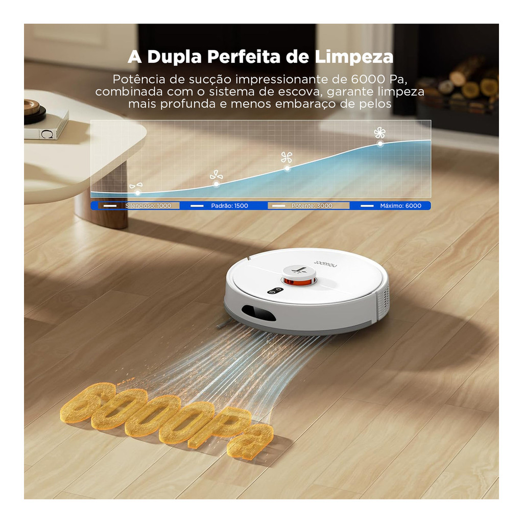 Sistema de navegação Tecnologia de navegação: Radar a laser Prevenção de colisões: Infravermelho + Sensor de impacto Prevenção de quedas: Sensor de precipício Mapeamento multinível Sistema de aspiração Sucção máxima: 6000Pa Altura livre para obstáculos: 20 mm Função de reforço para tapetes Capacidade do depósito de pó: 250 ml Filtragem: Filtro primário + filtro tipo HEPA Filtro tipo HEPA Nível de ruído: abaixo de 60 dB (modo padrão) Grau do filtro HEPA: E12 (lavável) Tipo de bateria: íon-lítio Capacidade nominal da bateria: 2600 mAh (opcional 3200 mAh/5000 mAh) Cobertura de limpeza única: mais de 120 m² Tempo máximo de funcionamento em pisos duros: mais de 120 minutos Tempo de carregamento: Tensão: 110 V Potência nominal: 35 W Frequência nominal: 50 Hz Especificações: Aspirador robô M20m (navegação a laser + aspiração/barbear) padrão europeu, aspirador robô M20m (navegação a laser + aspiração/barbear) padrão americano Barbear e aspirar ao mesmo tempo: fácil e sem esforço. A navegação LiDAR 360° mapeia sua casa com precisão para otimizar as rotas de limpeza e oferece visualização em 3D. A impressionante potência de sucção de 6000 pa, combinada com o sistema Brush, garante uma limpeza mais profunda e menos emaranhados de cabelos. O saco de pó com classificação E12 de 3,0 L permite limpar até 70 dias sem esvaziar, tornando-o ideal para famílias com animais de estimação e reduzindo os alérgenos A combinação de aspirador robô e esfregona adota a mais recente tecnologia de esfregona, equipada com uma bomba de água controlada eletronicamente e saída de água ajustável em 3 níveis (caixa de lixo: 300 ml, depósito de água: 250 ml)