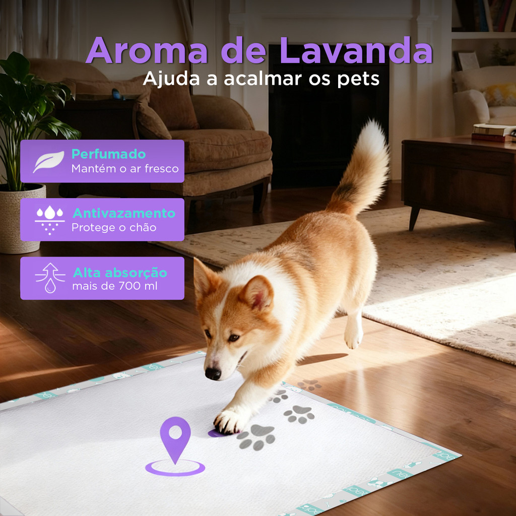 Newpet Tapete Higienico Confort Pads 80x60cm Para Caes Cachorro e Gatos com 30 Unidades Lavanda -com Borda Sem fugas