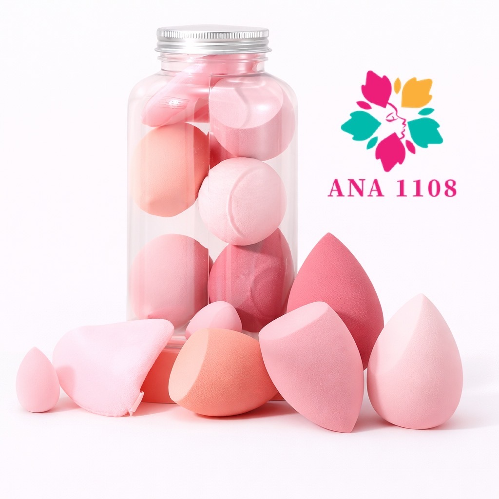 NewShow Conjunto De 14 Peças Esponja De Maquiagem E Sopro De Dedo Com Frasco De Armazenamento,Uso Úmido Seco