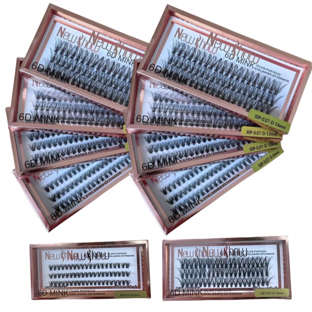 NewShow KIT Com 10 Caixas Cílios Postiços 6D MINK 30P-0.07-D Tufos sem Nó