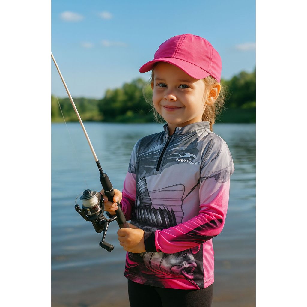 Nf47i - Camisa Camiseta de Pesca Infantil Tucunaré Feminina Gola Zíper Proteção Solar UV New Fisher