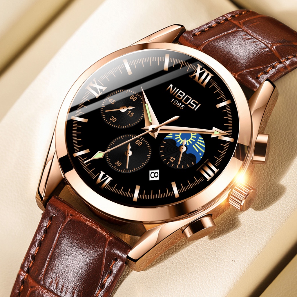NIBOSI 2515 Relógio Esportivo Digital Analógico De Marca Luxuosa Masculino. Relógio Militar De Couro De Quartzo Masculino