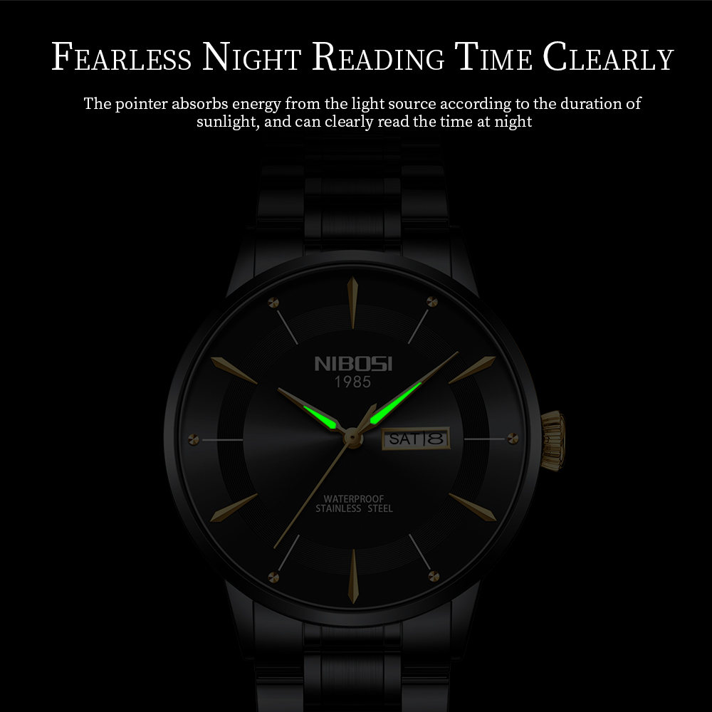 NIBOSI Luxury Gold Relógio Masculino casual À Prova D'água