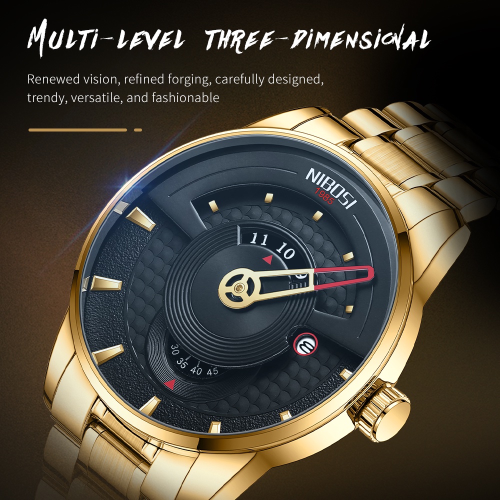 NIBOSI Novo 2509 Relógio De Quartzo De Luxo Com Pulseira De Aço Inoxidável à Prova D'água