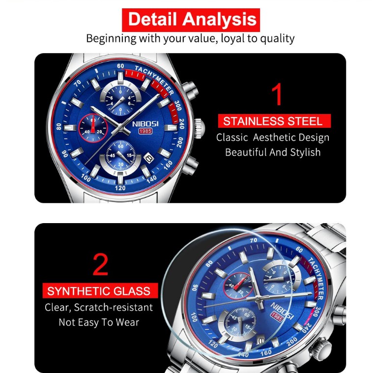NIBOSI Novo Relógio Masculino Moda Luxo Cronógrafo Azul Completo Data de Aço Inoxidável Relógio Masculino Esportivo