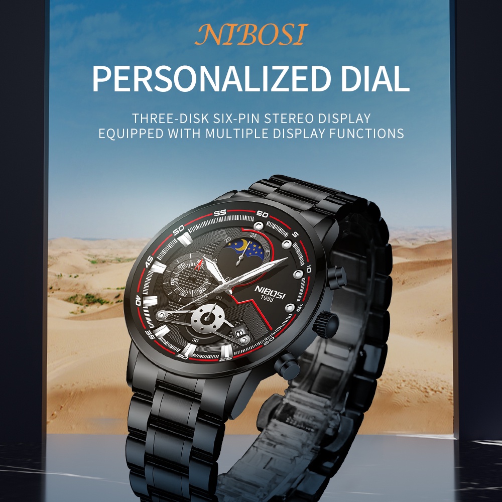 Marca: NIBOSI Comprimento da banda: 20cm Estilo: Luxo Movimento: QUARTZO Profundidade de resistência à água: 3Bar Tipo de fecho: Fecho oculto com botão de pressão Origem: CN (Origem) Material da Caixa: Aço Inoxidável Espessura da Caixa: 12 mm Tipo de material da janela de discagem: Hardlex Tipo de item: relógios de pulso de quartzo Material de caixas e estojos: papel Tipo de material da faixa: aço inoxidável Diâmetro do seletor: 44 mm Número do modelo: 2503 Largura da banda: 22 mm Forma da Caixa: Redonda Recurso: calendário completo Recurso: Resistente ao choque Característica: mãos luminosas Recurso: Rattrapante Recurso: cronômetro Característica: Antimagnético Recurso: Data Automática Recurso: cronógrafo Recurso: luz de fundo Característica: luminoso Recurso: Calendário Perpétuo