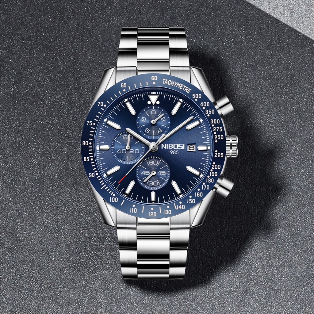 NIBOSI Relógio Calendário Multifuncional Luminoso original De Quartzo Analógico 30M Em Aço Inoxidável À Prova D'água Para Homens