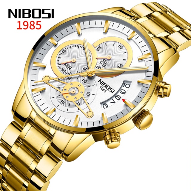 NIBOSI Relógio De Pulso De Quartzo Masculino De Ouro À Prova D 'Água Luminoso Com Data