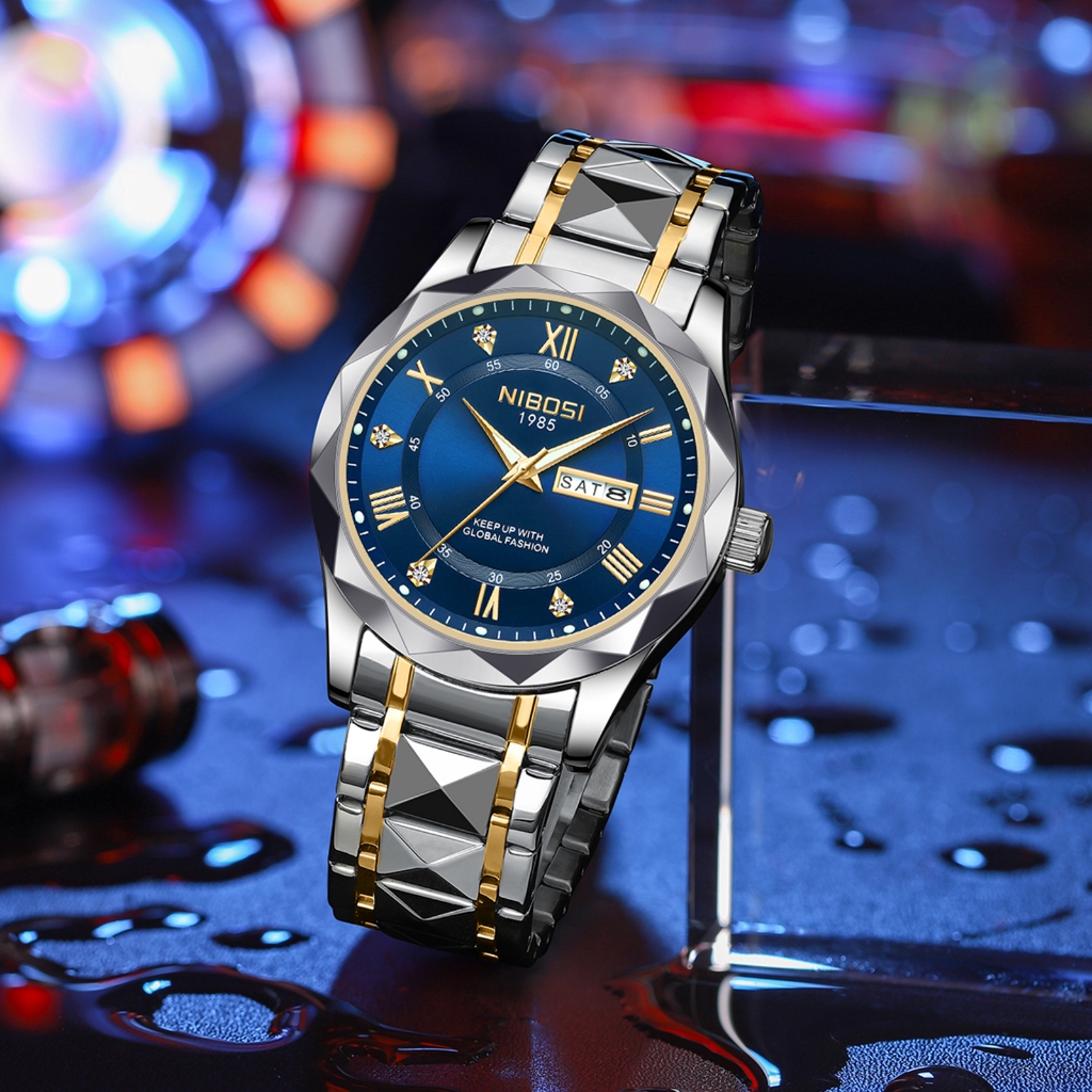 NIBOSI Relógio De Pulso Masculino Quartzo Aço Inoxidável Multifuncional Moda Relógios Esportivos Luminosos Com Calendário Cronógrafo