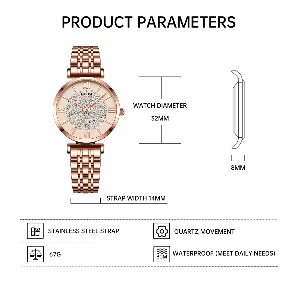 NIBOSI Relógio Feminino De Luxo Elegante De Quartzo De Moda