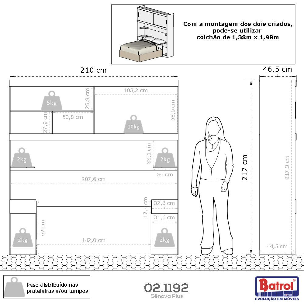 Procurando elegância e visual diferenciado para o seu quarto? Venha conferir! Dimensões: Altura: 217 cm | Largura: 210 cm | Profundidade: 46 cm Características: - Estrutura em MDP de 12 e 15 mm - Corrediças metálicas - Puxador ICE - Portas de correr - Pintura UV Fosco - Suporte de peso gaveta e prateleira 5 kg - Sem pés - Garantia de 12 meses Os criados mudos podem ser retirados. Com os dois montados há espaço para uma cama de 1,38cm (casal). Com apenas um criado, há espaço para camas de 1,58cm (queen), já sem nenhum criado mudo há espaço para camas de 1,90cm (king). Os criados podem ser montados e usados separadamente. Não há encaixe para cama de solteiro. ** Imagens ilustrativas. Objetos não acompanham o produto. ** O produto é enviado desmontado. AVISO: Esclarecemos que a Opção Móveis se responsabilizará pela entrega dos produtos adquiridos até a porta de entrada ou portaria do endereço indicado, ou seja: é de total responsabilidade do cliente a montagem, desmontagem e instalação do produto adquirido. Para evitar futuros desagrados ou imprevistos com a entrega, também é necessário que o cliente confira as dimensões do produto escolhido, antes de finalizar a compra, devendo certificar-se de que a mercadoria passará normalmente por elevador, porta, escada e corredor.